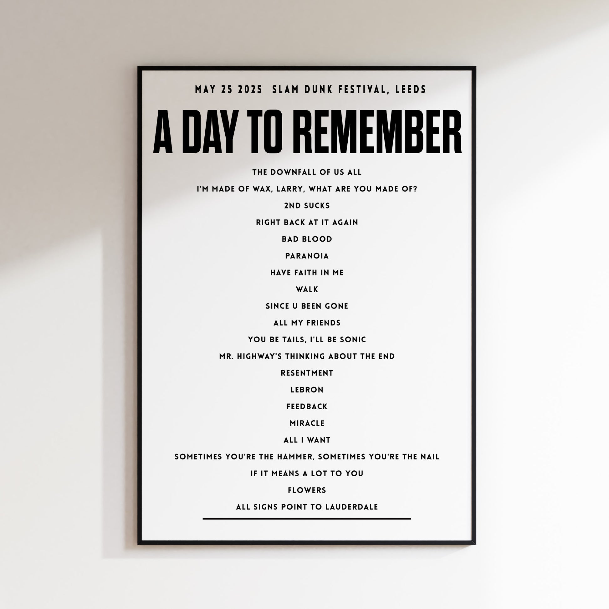 A Day to Remember, May 25th 2025, Slam Dunk Festival Setlist