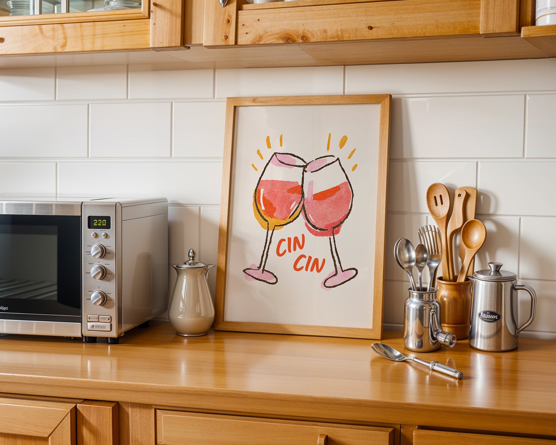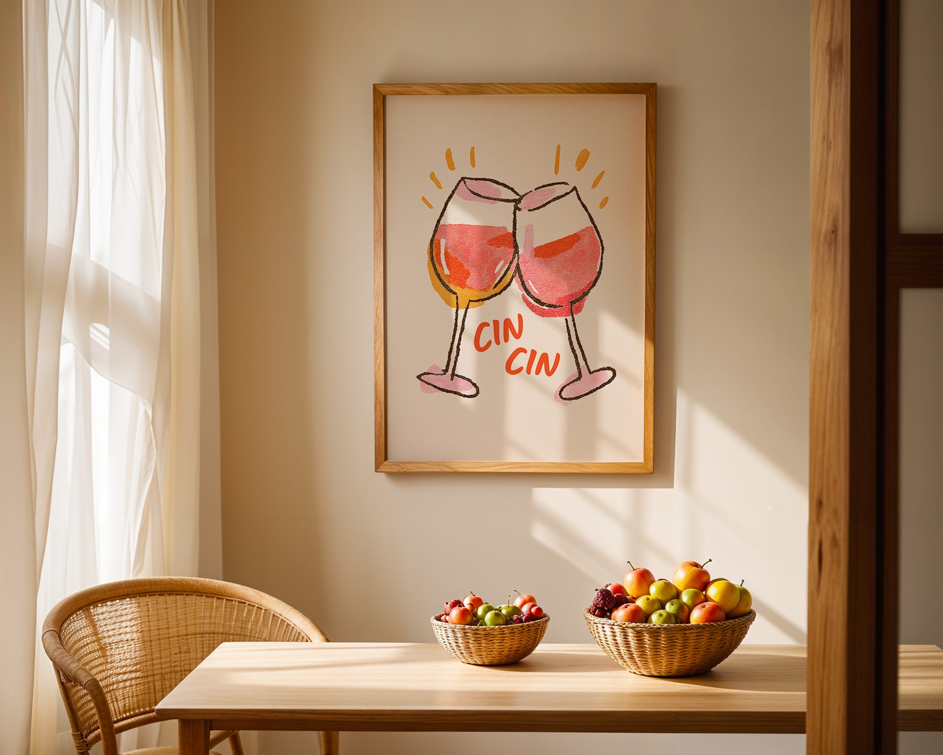 Minimalist kitchen posters showcasing coffee, wine, kitchen quotes, fruit, and culinary illustrations. Designed for effortless styling in modern spaces.