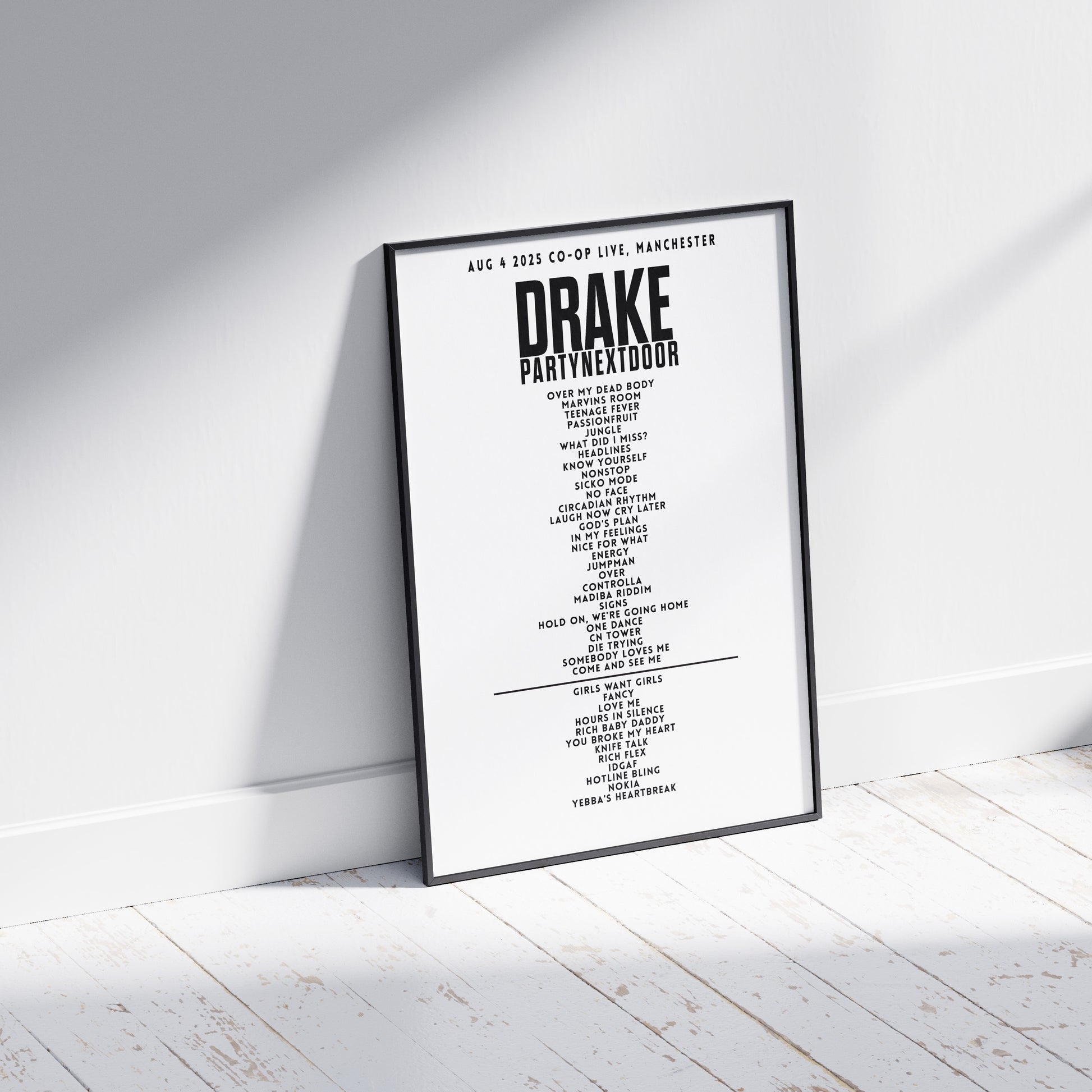 Bring your favourite concert to life! If you want a setlist poster for a specific gig, tour, or artist, we can create it just for you. Every poster is fully personalised—choose your artist, venue, date, and even select the songs that matter most.