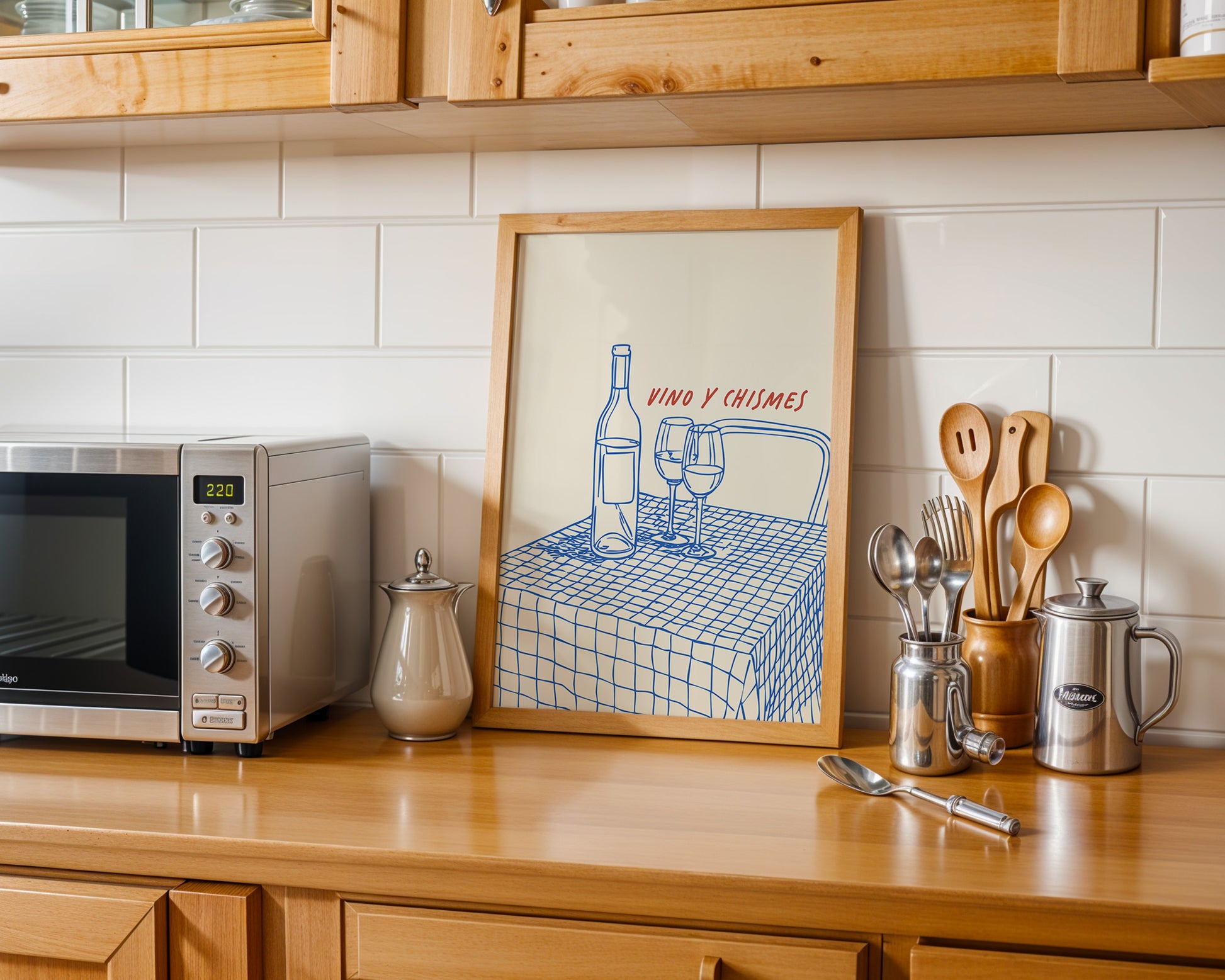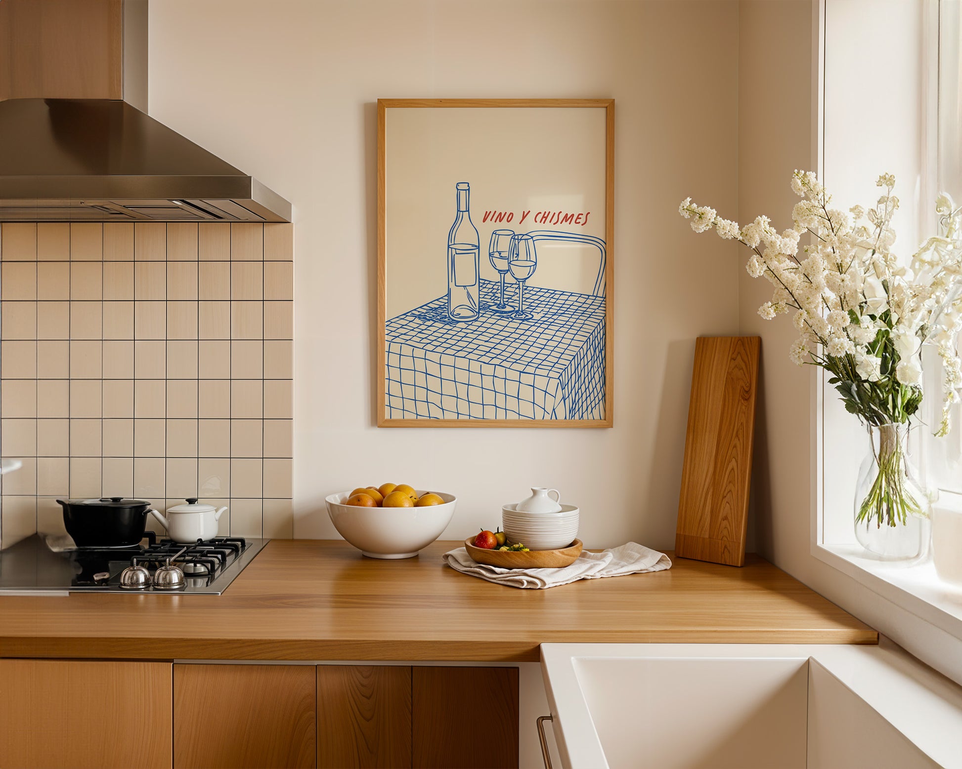 Minimalist kitchen posters showcasing coffee, wine, kitchen quotes, fruit, and culinary illustrations. Designed for effortless styling in modern spaces.