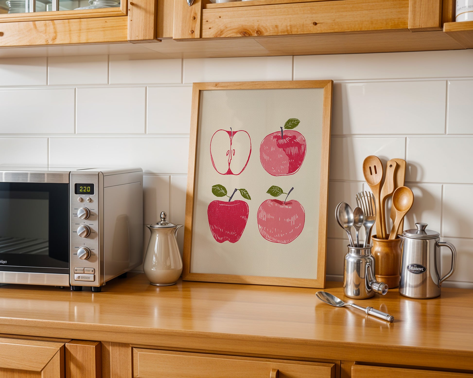 Minimalist kitchen posters showcasing coffee, wine, kitchen quotes, fruit, and culinary illustrations. Designed for effortless styling in modern spaces.