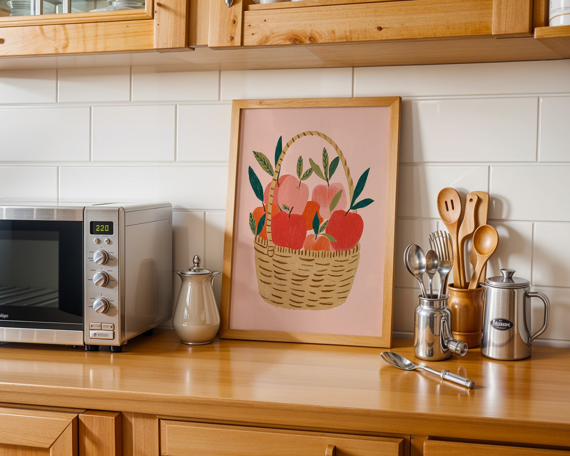 Minimalist kitchen posters showcasing coffee, wine, kitchen quotes, fruit, and culinary illustrations. Designed for effortless styling in modern spaces.