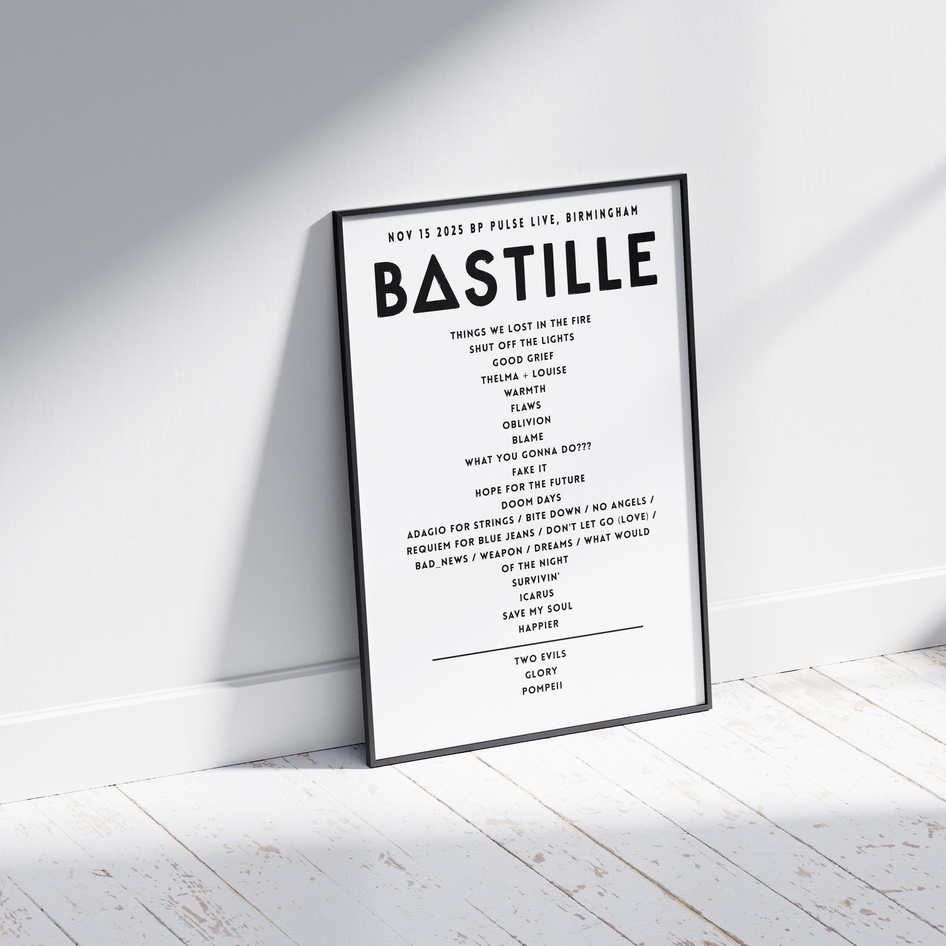 Celebrate Bastille’s 2025 tour with this premium setlist poster, designed for fans who want to relive the energy of the live show. Featuring the full tour setlist in a clean, modern layout, this high-quality art print makes a perfect gift for indie music lovers, birthdays, Christmas, or any special occasion.