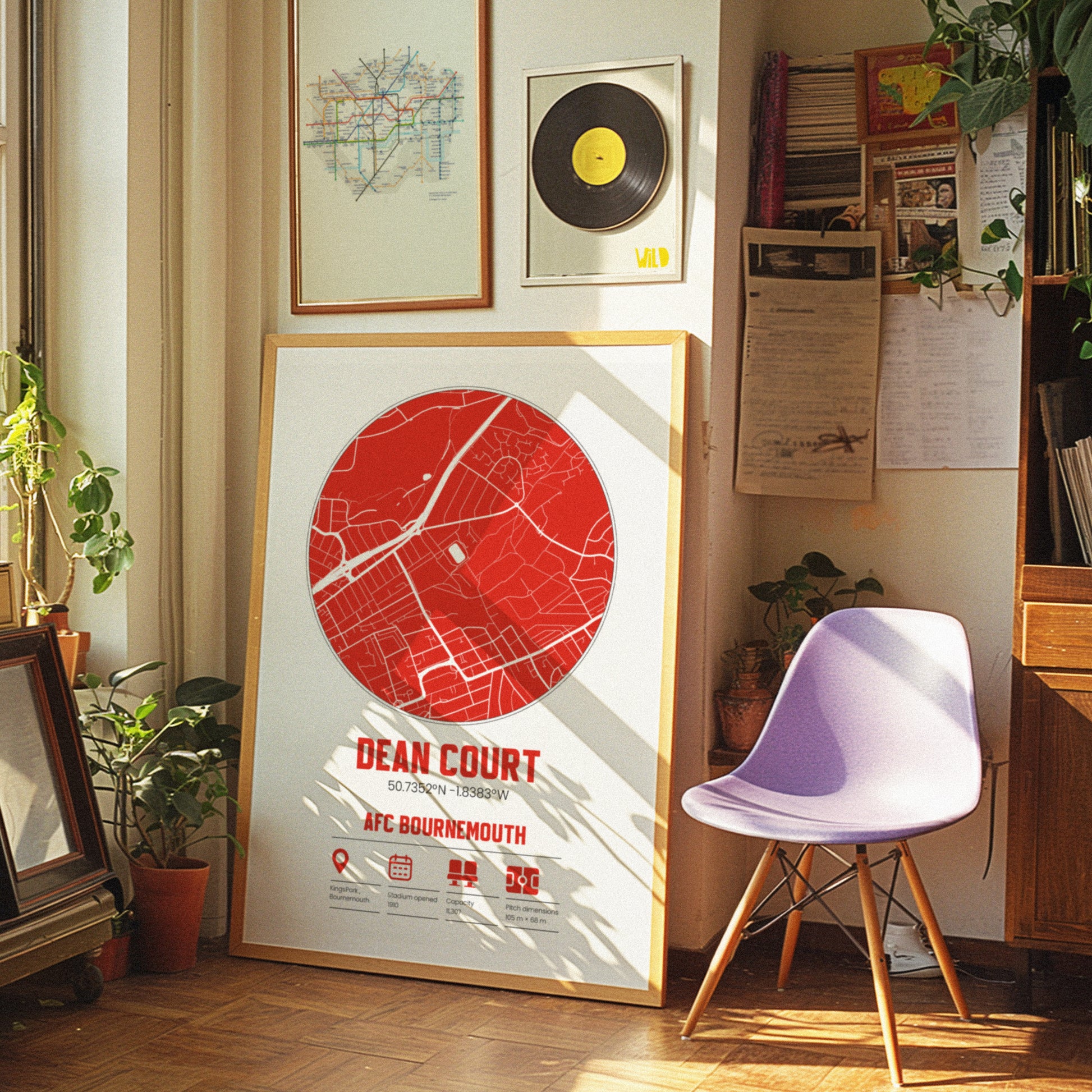 🔴⚫ Dean Court Stadium – AFC Bournemouth Custom Map Print