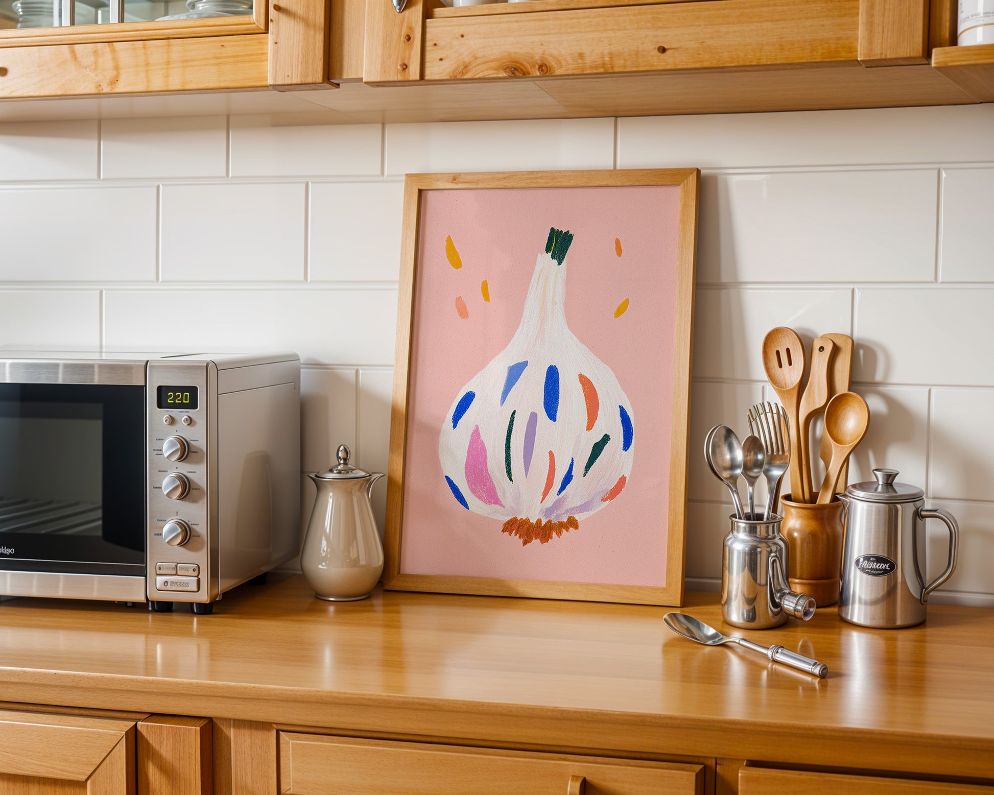 Minimalist kitchen posters showcasing coffee, wine, kitchen quotes, fruit, and culinary illustrations. Designed for effortless styling in modern spaces.