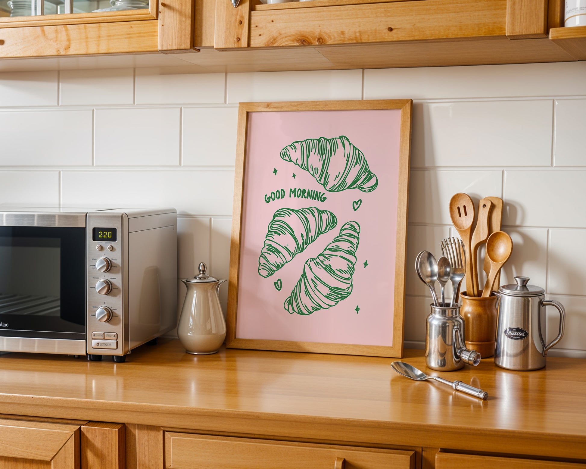 Minimalist kitchen posters showcasing coffee, wine, kitchen quotes, fruit, and culinary illustrations. Designed for effortless styling in modern spaces.