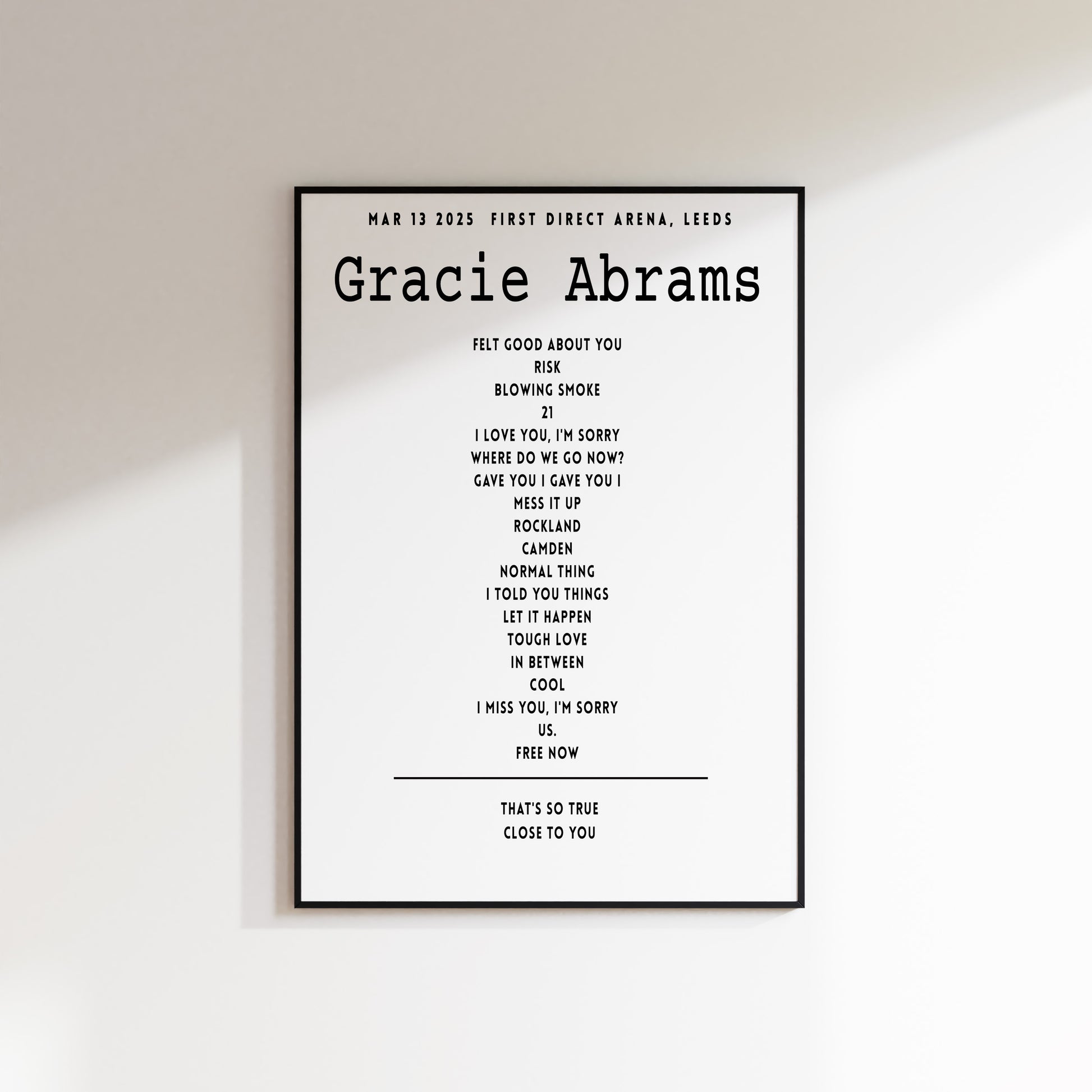 Gracie Abrams Setlist - March 13th 2025 First Direct Arena, Leeds
