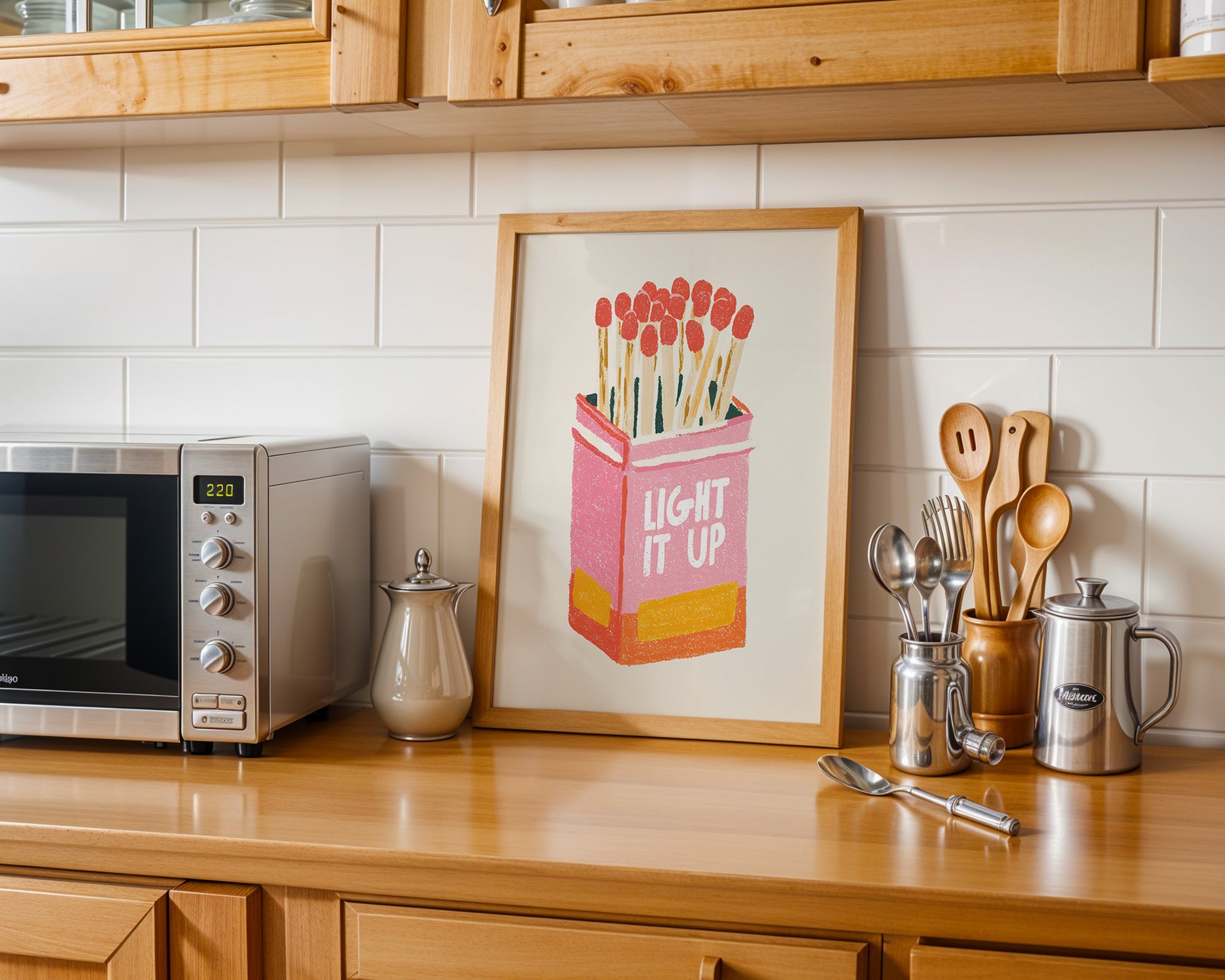 Minimalist kitchen posters showcasing coffee, wine, kitchen quotes, fruit, and culinary illustrations. Designed for effortless styling in modern spaces.