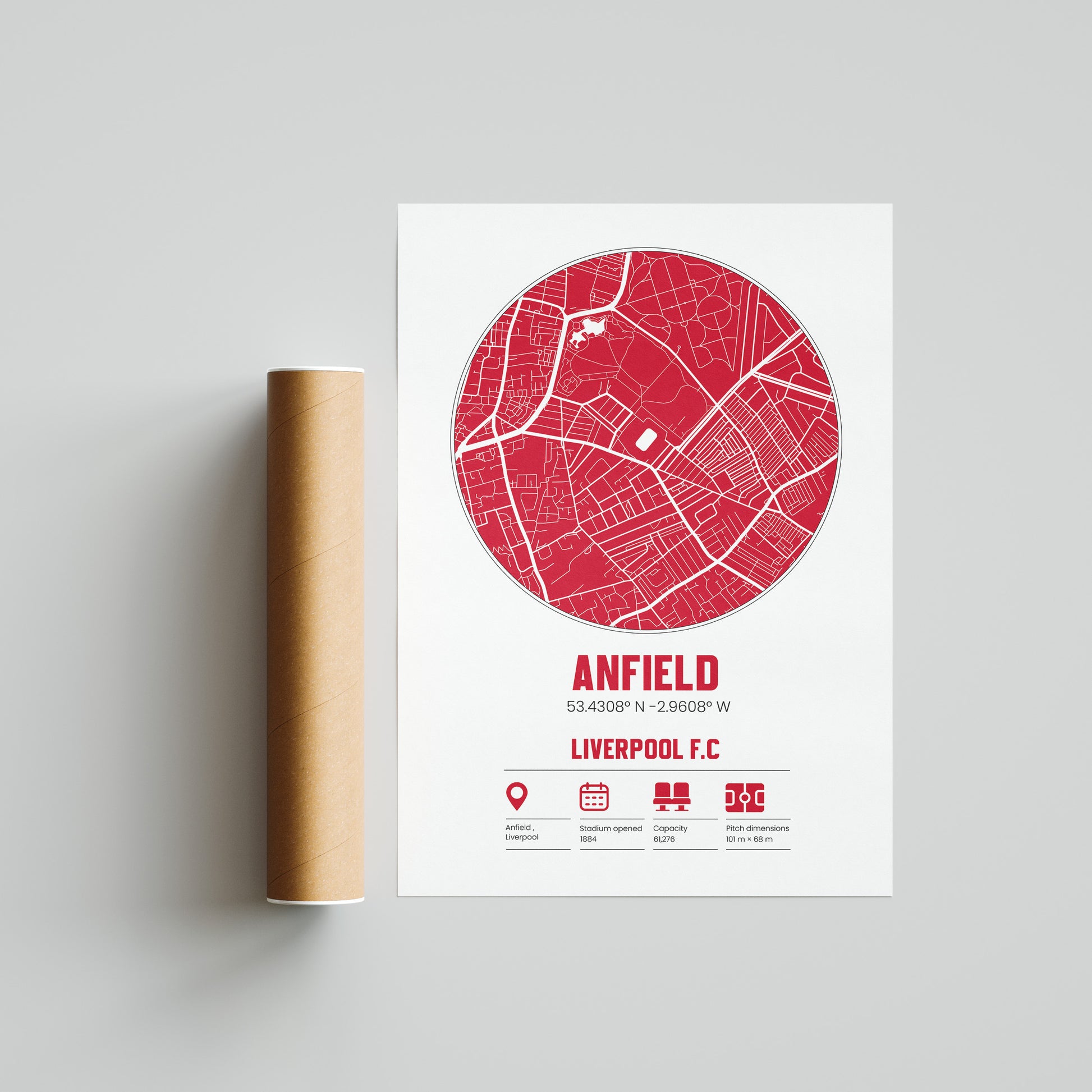 🏟️ Anfield, Liverpool FC – Custom Map Print Poster
