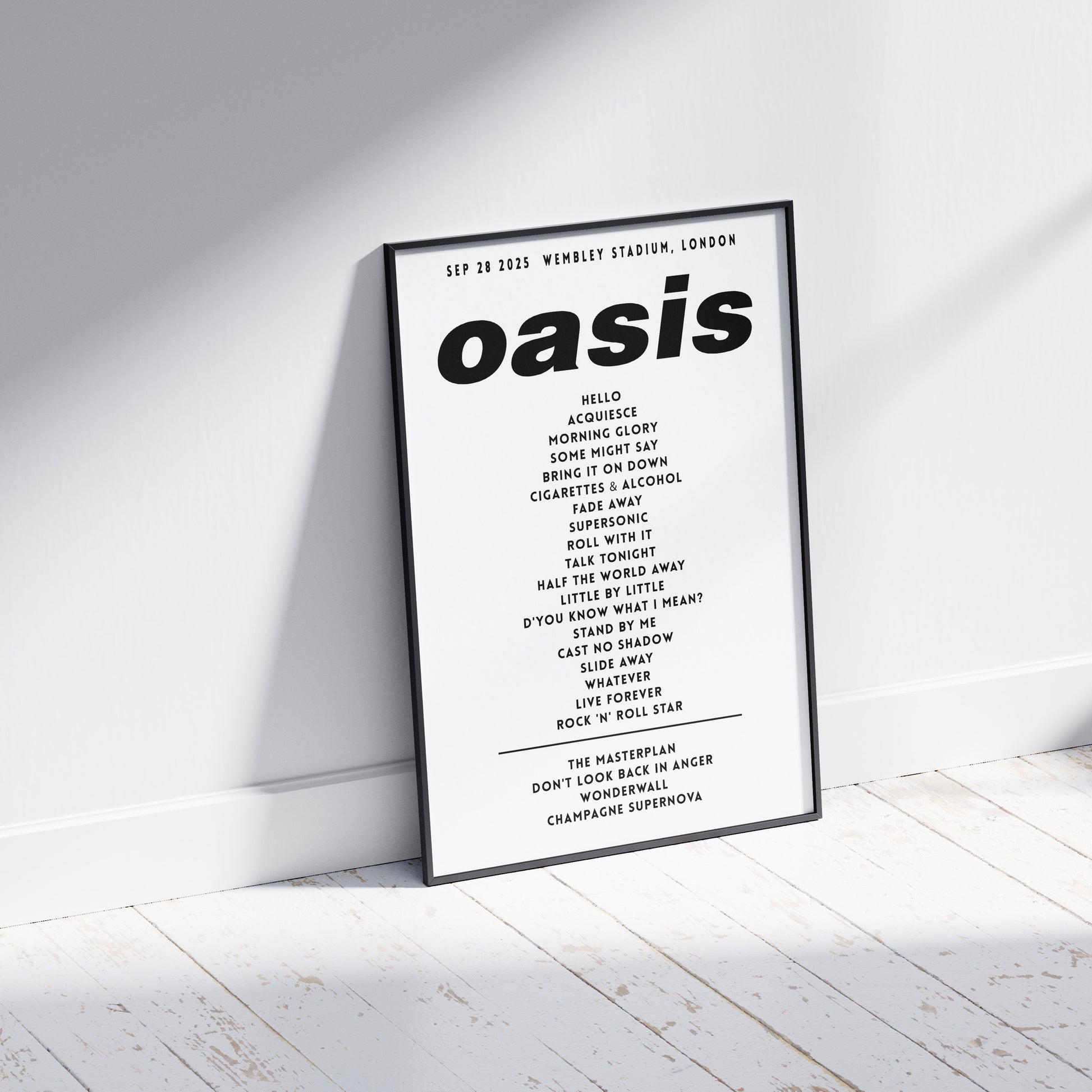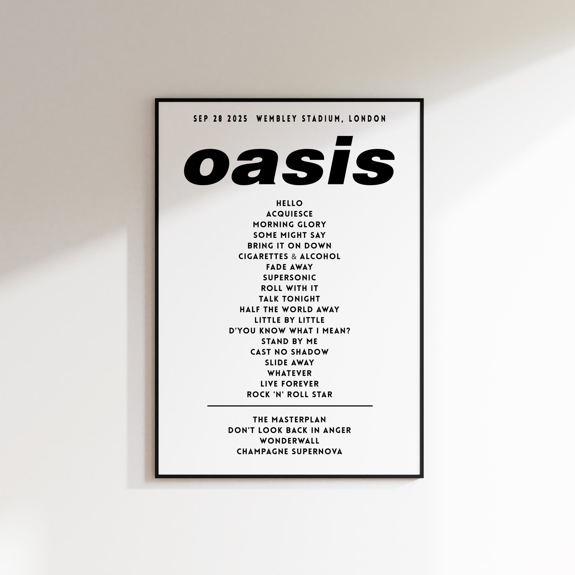 Oasis Setlist Poster - 28th September 2025, Wembley Stadium, London