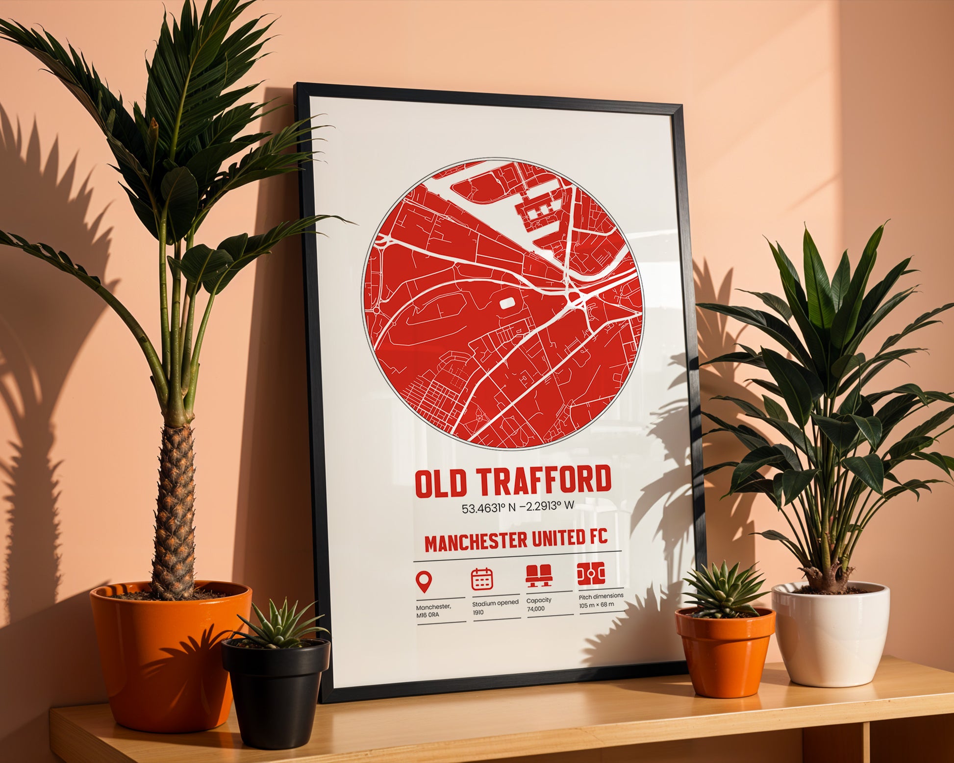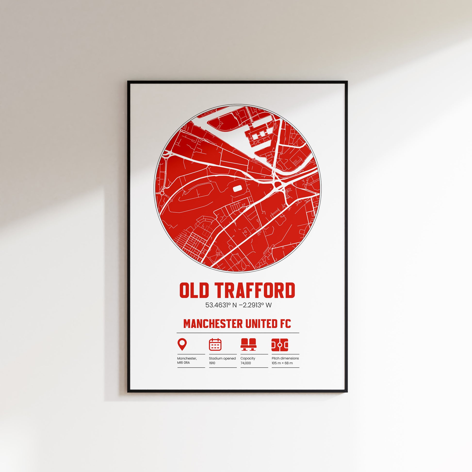 🔴 Old Trafford Stadium Map Print – Manchester United FC Custom Wall Art