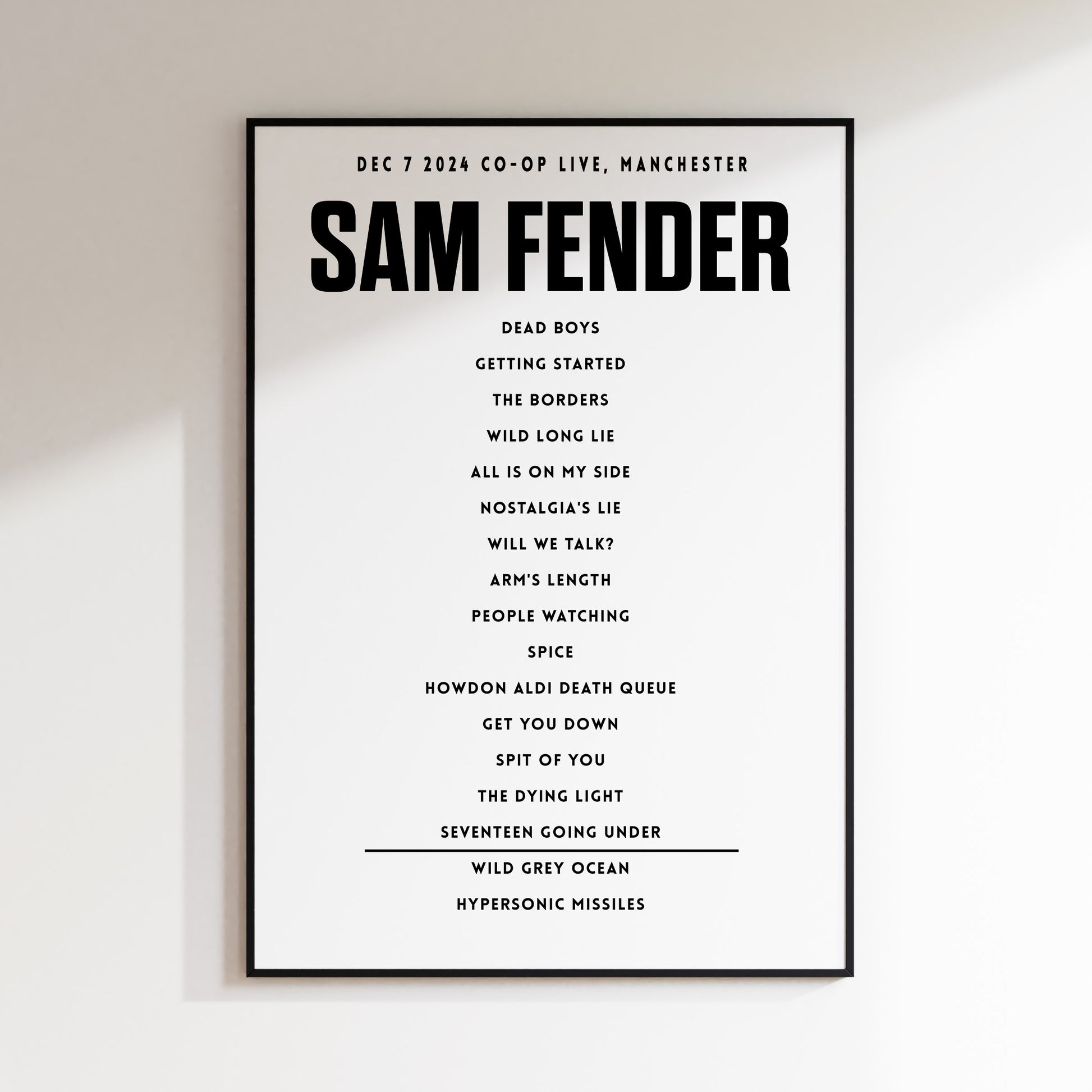 Sam Fender Setlist - December 7th 2024 Co-Op Live, Manchester