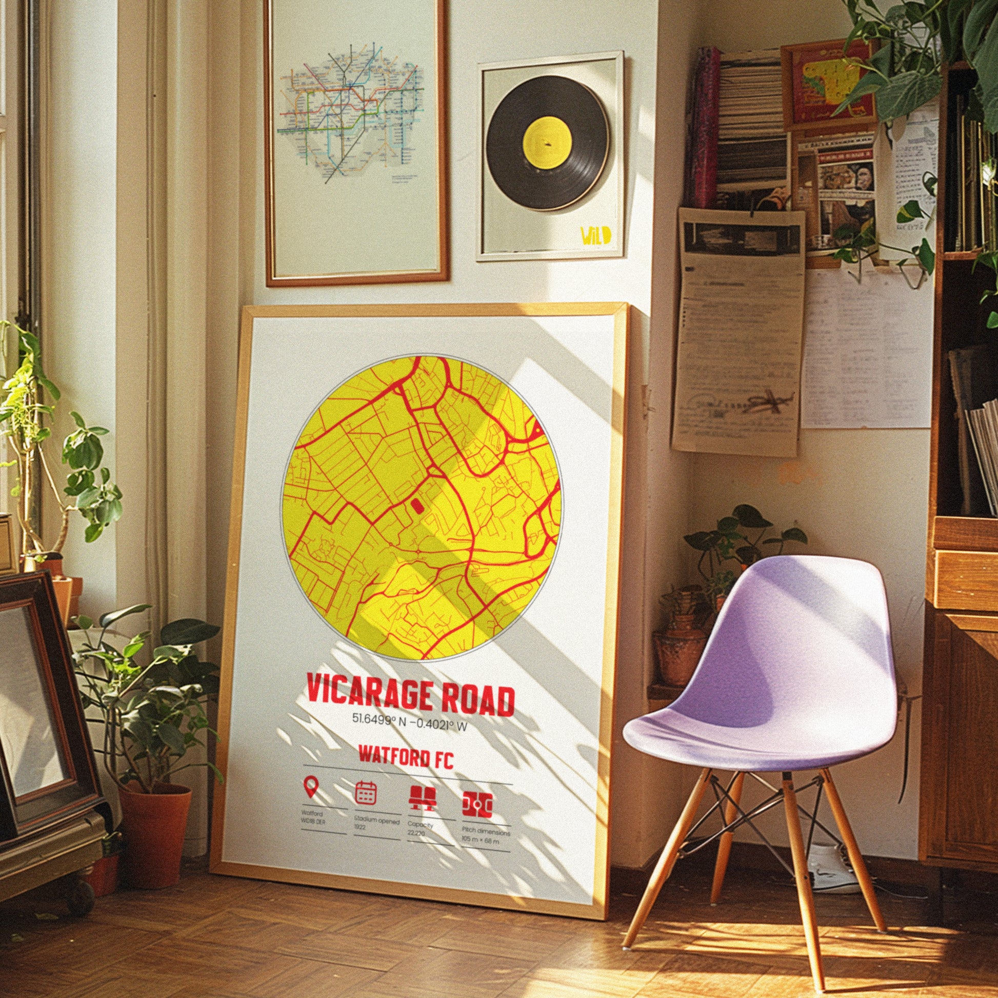 🐝 Vicarage Road Stadium Map Print – Watford FC Custom Wall Art