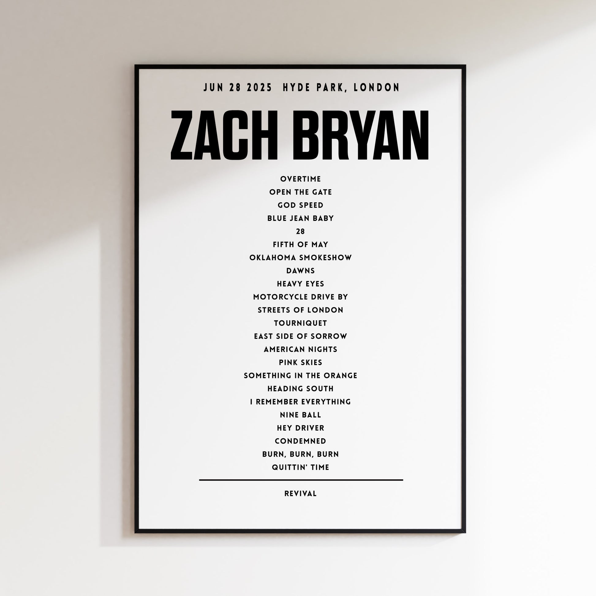 Zach Bryan Setlist, June 28th 2025, Hyde Park, London